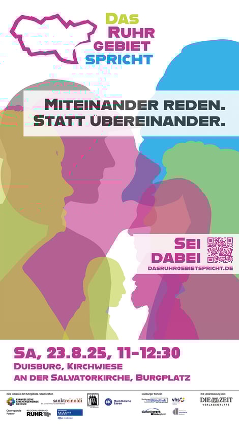 Wie oft reden wir eigentlich mit jemanden, der ganz anders denkt als wir? "Das Ruhrgebiet spricht" macht genau das möglich! Am 22.08. und 23.08.2025 sind die 4 größten Städte des