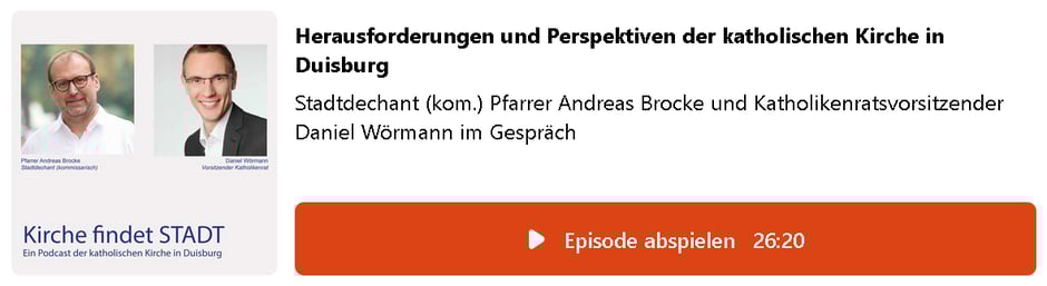 Andreas Brocke und Daniel Wörmann sprechen in Folge 1 über Herausforderungen und Perspektiven für katholische Kirche in Duisburg
