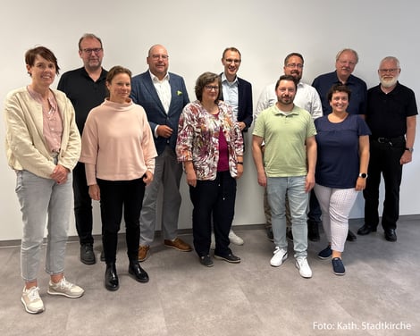 Das Foto zeigt (v. l. n. r.) die Teilnehmenden einer erweiterten Vorstandssitzung von Katholikenrat und Stadtkonferenz.